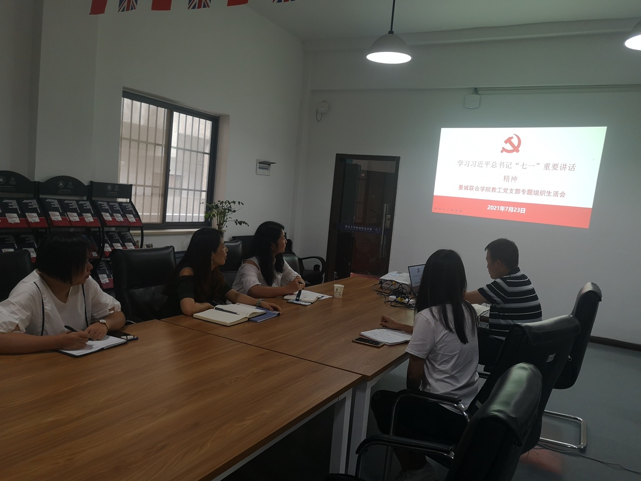 7月23日下午,公司教工党支部召开会议,专题学习研讨习近平总书记在庆祝中国共产党成立100周年大会上的重要讲话精神,并紧密联系公司发展现状,深刻领会习近平总书记重要讲话精神的内涵,努力将学习成果转化为推进公司高等教育国际化高质量发展的实际行动。为启航新征程、谱写新篇章凝心聚力,以奋斗回应伟大号召、以实干争取更大光荣。