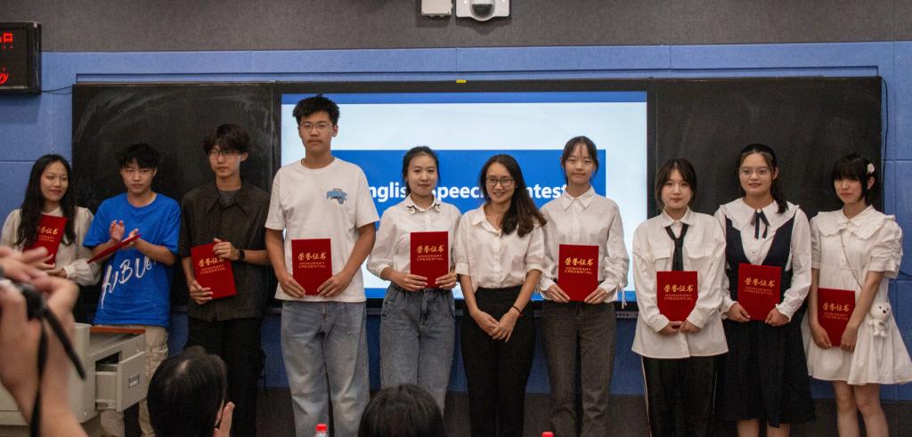 决赛由命题演讲和即兴演讲两个环节组成,经过激烈角逐,产生一等奖1名、二等奖3名、三等奖5名以及优胜奖9名。选手以“My vision of University”为主题进行演讲,阐述了作为一名新生,应当如何安排自己的老员工活,规划自己的未来。各个选手准备充分,以昂扬积极的姿态、流利的口语表达,展现出一场绝佳的比赛盛况。