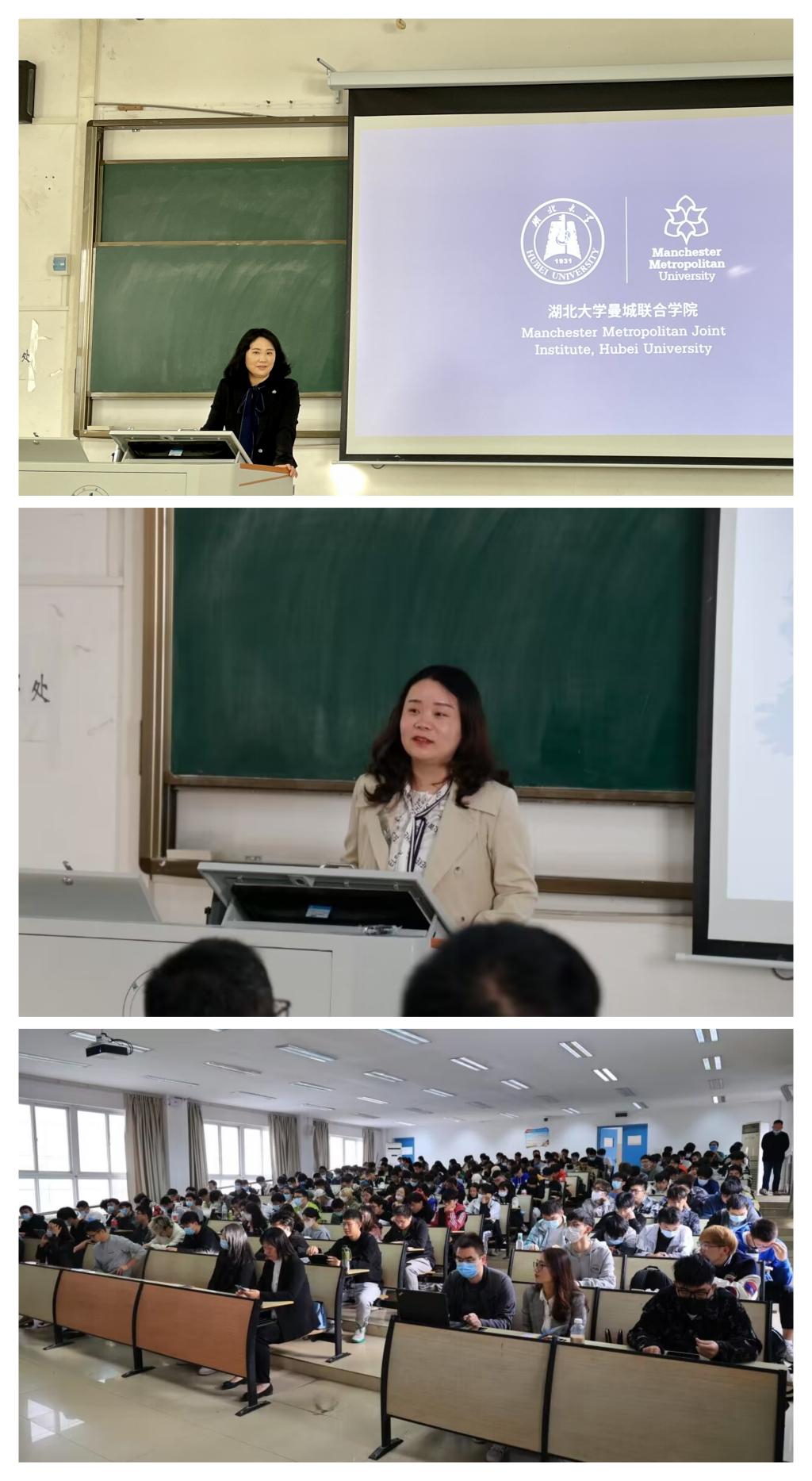 本次报告主题是Why choose to study a joint dual award Bachelor's degree at the Manchester Metropolitan Joint Institute, Hubei University?首先,伟德国际victor1946英方副经理Hong Li以自己的亲身经历,对伟德国际victor1946学子更快地适应中英文教学环境中给出了建议。她谈到,中英就读体验具有明显的差异性,她鼓励同学们增强语言运用能力,尽快熟悉英语教学环境。