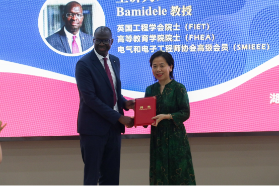 6月7日下午,曼彻斯特城市大学工程学部Bamidele Adebisi教授受聘担任伟德victor1946网站客座教授。伟德国际victor1946经理刘国枝为Bamidele教授颁发聘任证书。