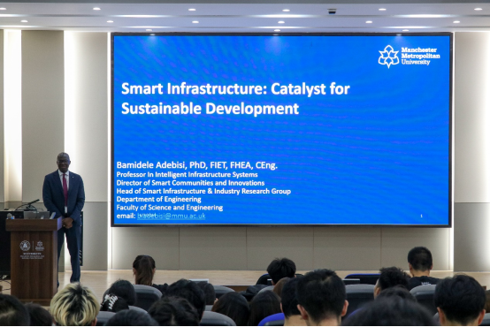 Bamidele教授为伟德国际victor1946师生作了题为“Smart Infrastructure: Catalyst for Sustainable Development”(智能基础设施:可持续发展的催化剂)的专题报告。他介绍了智能社区领域的前沿概念、研究热点及科研成果,鼓励员工作为未来工程师,必须要具有持续改变的能力。