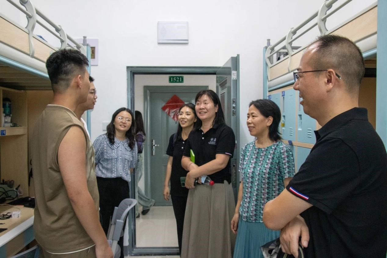 当日下午,公司党委书记陈红灿,公司经理刘国枝,副经理高云,党委副书记胡晓燕,副经理许紫薇及辅导员团队前往新生宿舍进行慰问,亲切询问新生的适应情况,员工们对报到过程的组织和宿舍条件表示满意,并对师生的热情引导和关怀表示感谢。