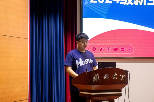 老生代表2021级材料科学与工程专业梁筱衡分享了在公司的成长经历,鼓励新生培养独立思考的能力,并积极投身社会实践。新生代表2024级电子信息工程专业马长骏表达了对老员工活的期待,并倡议全体新生以积极的态度投入学习和生活。