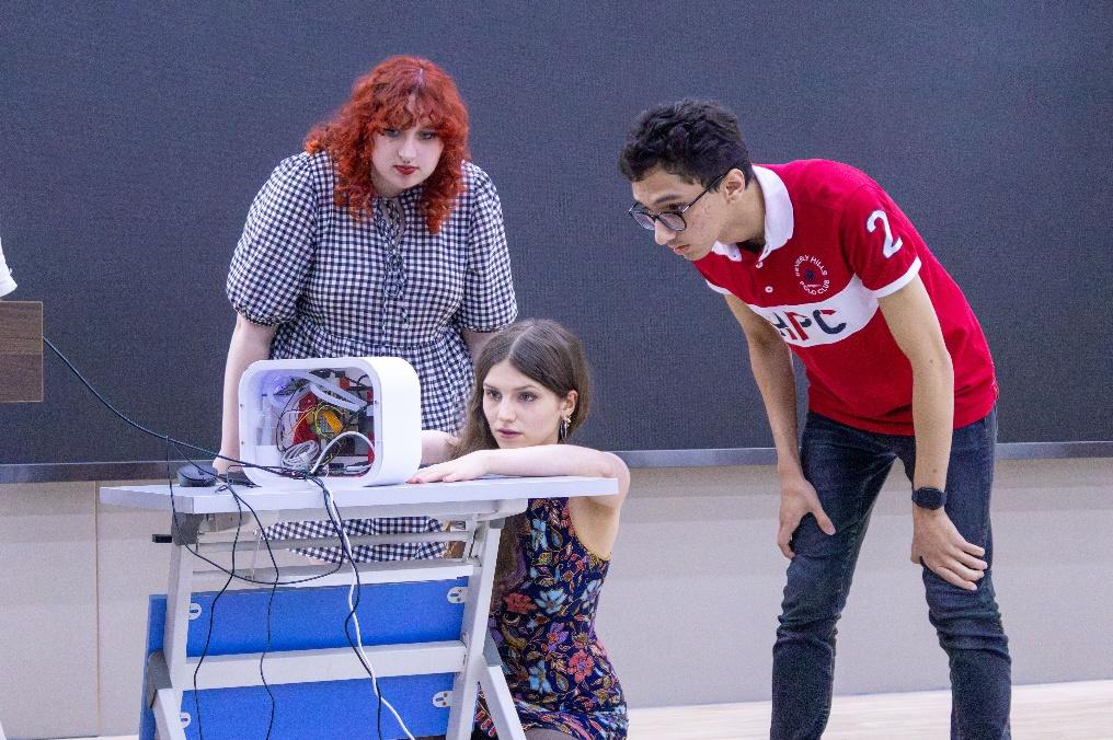 汇报会上,12个项目小组依次展示智能建筑和信息技术领域的成果,涵盖数字孪生3D建筑模型搭建、人机交互、计算机视觉识别、楼宇环境监测、安全防护系统等,体现跨学科合作与技术创新。基于YOLOv11算法的边缘计算系统、CO₂捕集技术的低碳楼宇解决方案、Sony AI Camera的安全及人体健康应用等项目获评审老师重点关注。评审老师肯定项目技术可行性和应用价值,并提出优化建议。