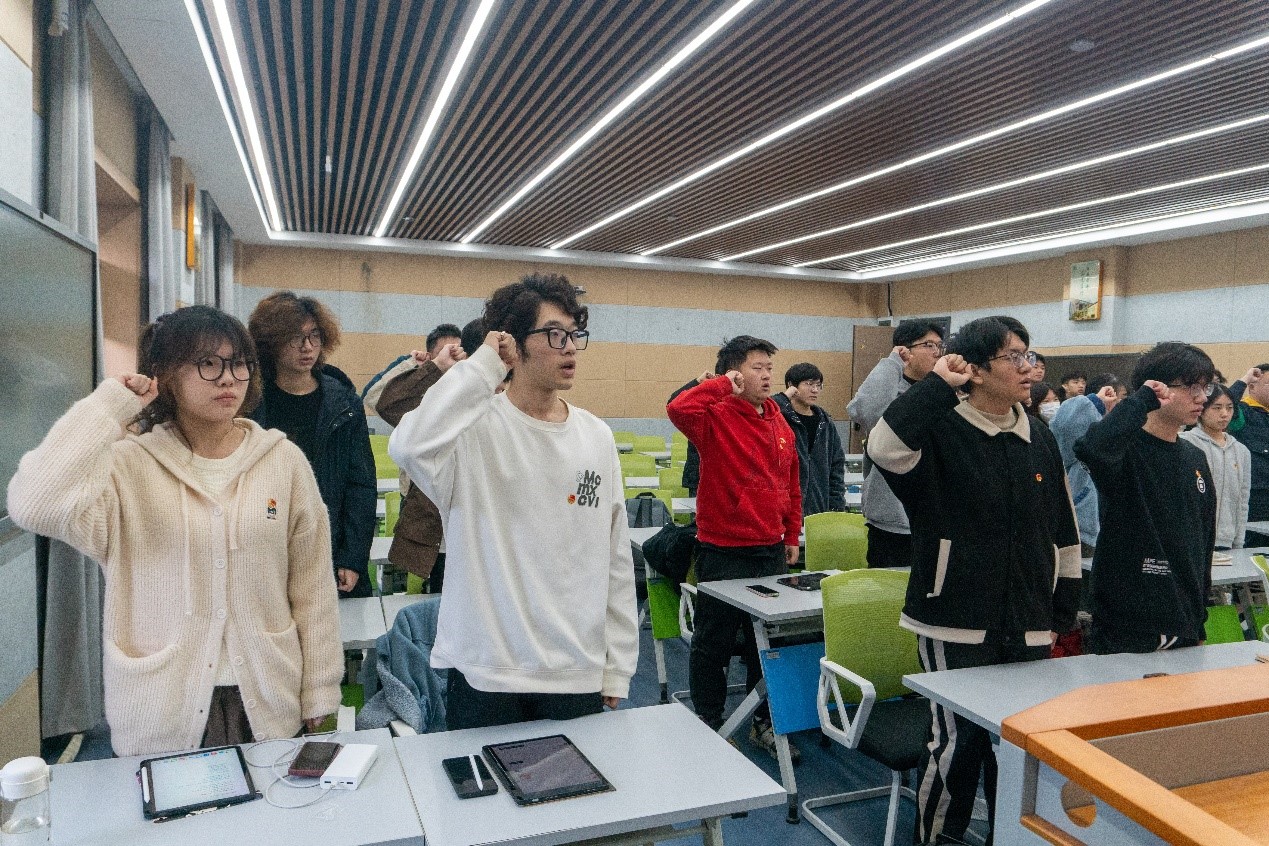 11月17日,软件工程2201班团支部在公司306室开展“强国复兴担使命 实干奋进我先行”主题示范团日活动,班主任孙斌、辅导员曾曦参加活动。