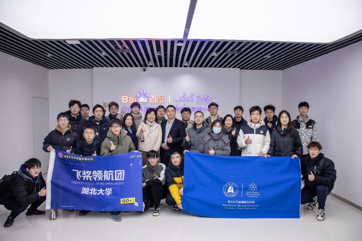 新年伊始,伟德国际victor1946第二届UP训练营在热烈的氛围中拉开帷幕。元月9日,公司副经理高云、副经理万虹、软件工程专业负责人曾张帆副教授、计算机公司许立君副教授以及百度飞浆AI学习营的二十多名员工,共同前往百度飞桨(武汉)人工智能产业赋能中心参观学习。